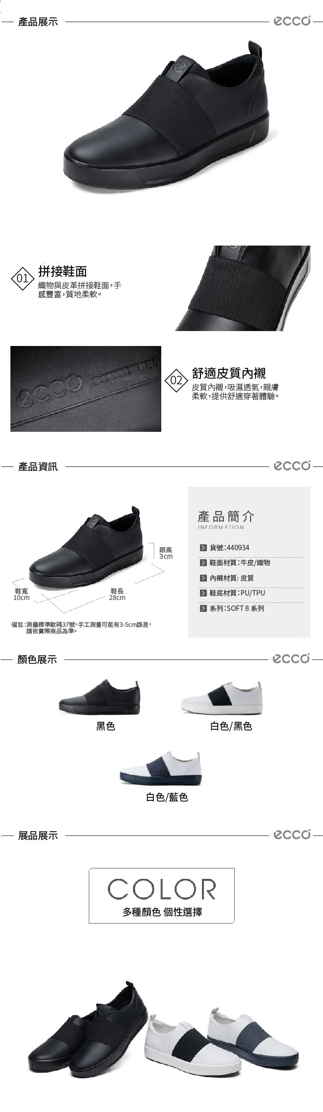 【ecco】SOFT 8 MENS 簡約撞色鬆緊帶設計休閒鞋 男(黑 44093451052)鞋子重量會很重嗎尺寸規格要怎麼看