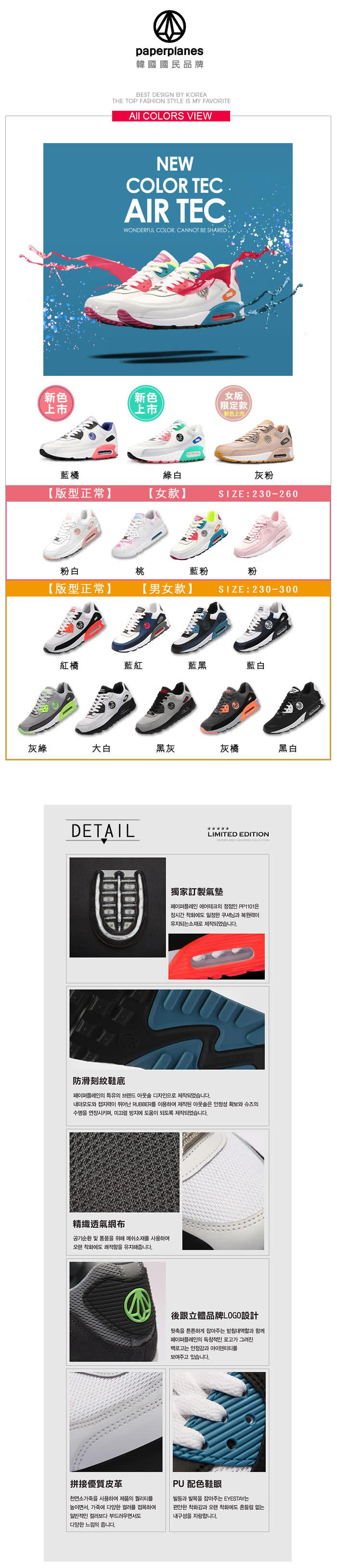 【Paperplanes】正韓空運/正常版型。特殊配色皮革拼接真皮氣墊休閒運動鞋(7-1100灰粉/現+預)鞋子重量會很重嗎尺寸規格要怎麼看