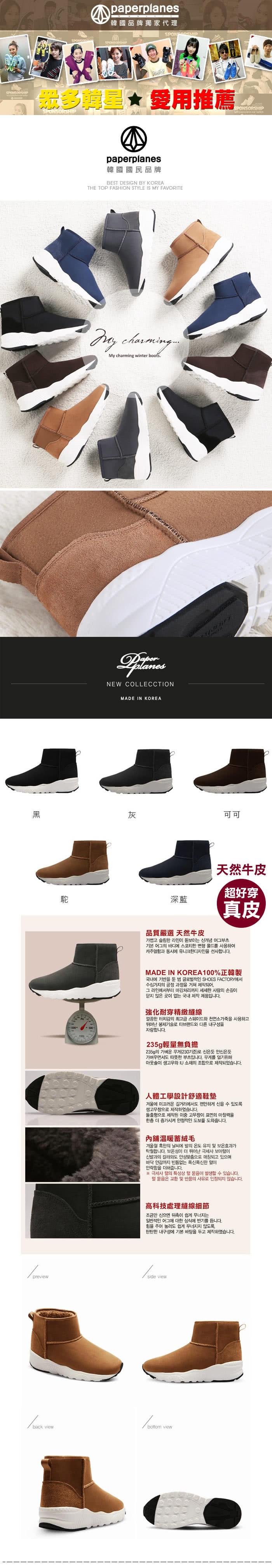 【Paperplanes】正韓製/版型正常。女款天然牛皮麂絨側拉鍊內鋪毛運動厚底短筒雪靴(7-1427/現貨)鞋子重量會很重嗎尺寸規格要怎麼看