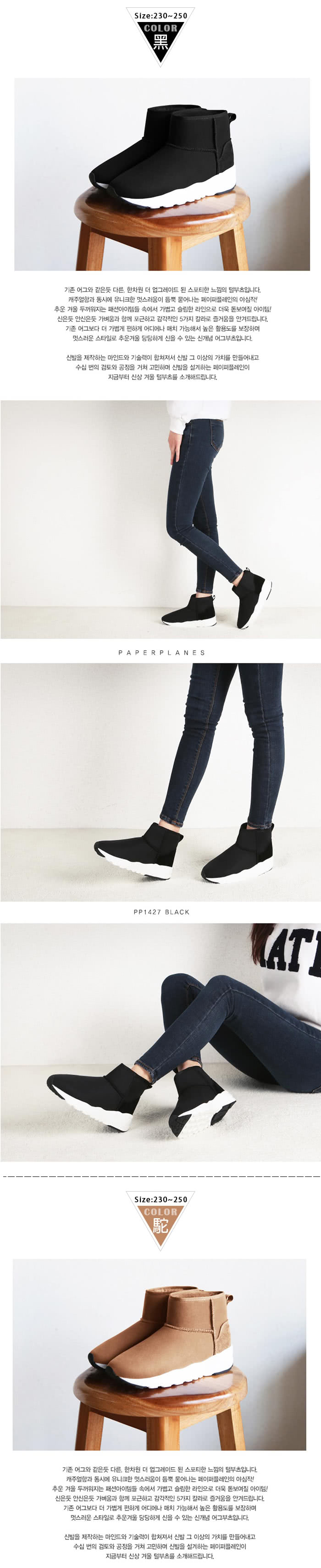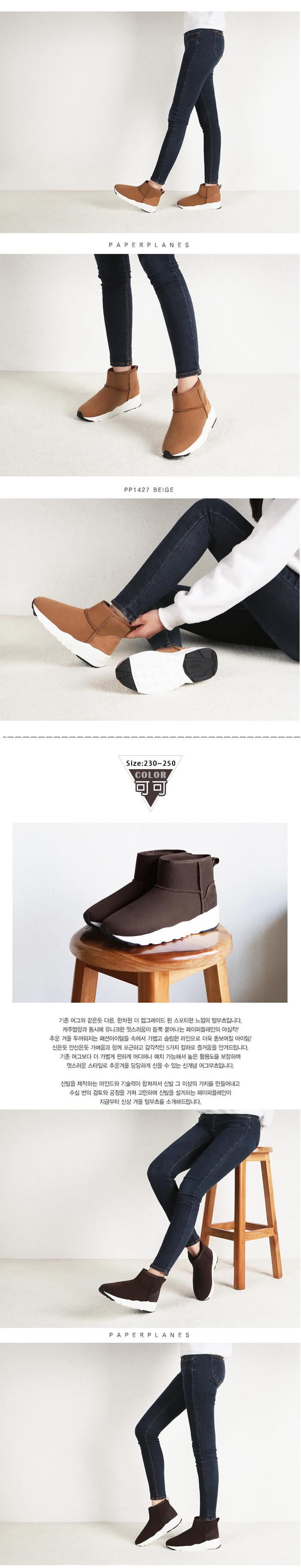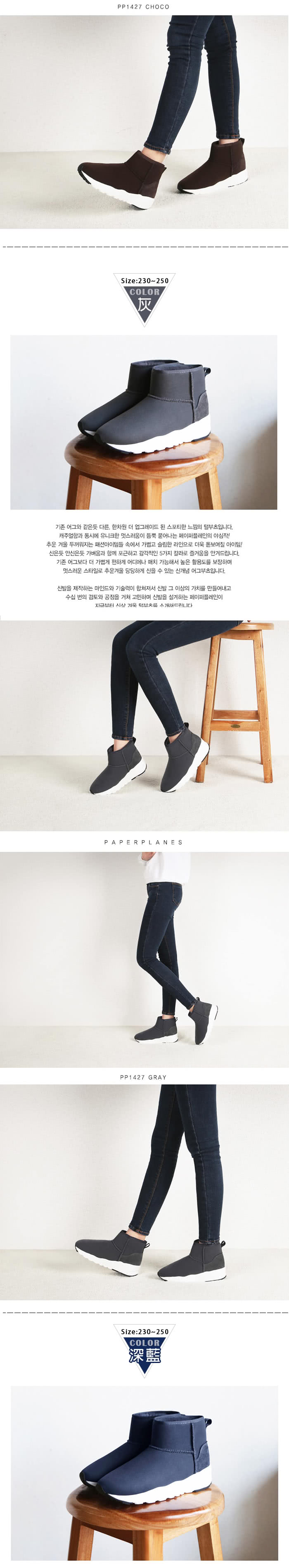 【Paperplanes】正韓製/版型正常。女款天然牛皮麂絨側拉鍊內鋪毛運動厚底短筒雪靴(7-1427/現貨)適合亞洲人穿嗎腳掌寬的人適合穿嗎